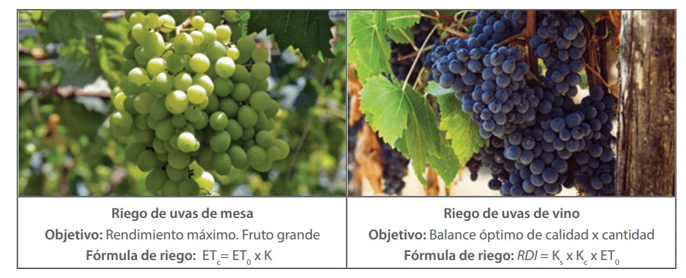 Los sistemas de riego bien gestionados mejoran la calidad de la uva al permitir un control preciso de los niveles de agua, lo que ayuda a regular el vigor de la vid y a concentrar los azúcares y sabores en el fruto. Un riego excesivo o mal gestionado puede hacer que las plantas y los frutos sean más vulnerables a plagas y enfermedades, afectando negativamente tanto la producción actual como la futura, en cantidad y calidad. Sin embargo, con una planificación y monitoreo adecuados, el riego puede mejorar la calidad de la uva y la productividad del viñedo. Como se muestra en la tabla siguiente, existe una diferencia significativa en el precio de la uva según su nivel de calidad.